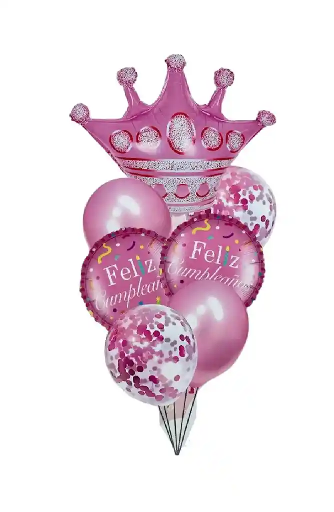 🎈 Bouquet 7 Piezas Corona Confeti Rosado Feliz Cumpleaños Incluye 3 Globos Metalizados Incluye: 1 Globo Metalizado en Forma de Corona Rosado, 2 Globos Metalizado con mensaje de Feliz Cumpleaños rosado con piscas de colores, 2 Globos Confeti y 2 Globos lisos rosados. ⚠️SE ENVÍA DESINFLADO. Se puede inflar con aire. No requiere helio. Para inflar sus globos metalizados o globos de látex, tenemos disponible en nuestra tienda el INFLADOR MANUAL. No olvide incluirlo en su pedido.