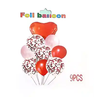 Hermoso Bouquet 9 Piezas Rojo Y Cristal Confeti Incluye 1 Globo Metalizado Contiene: 1 Globo Metalizado en Forma de Corazon Color Rojo, 4 Globos Confetti, 2 Globos Lisos Rosados y 2 Globos Lisos Rojo. EL BOUQUET SE ENVIA DESINFLADO. Para inflar sus globos, tenemos disponible para la venta en nuestra tienda el INFLADOR MANUAL. No olvide incluirlo en su pedido