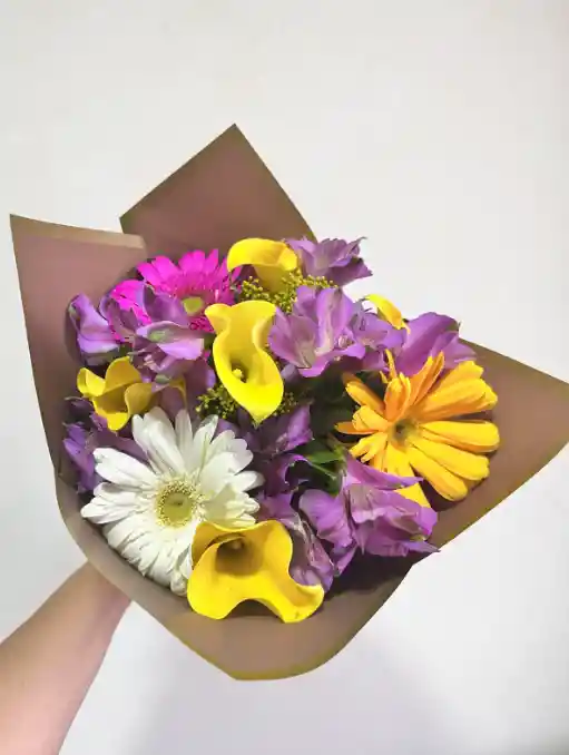 5 mini callas + 3 gerberas + 5 astromelias + follaje