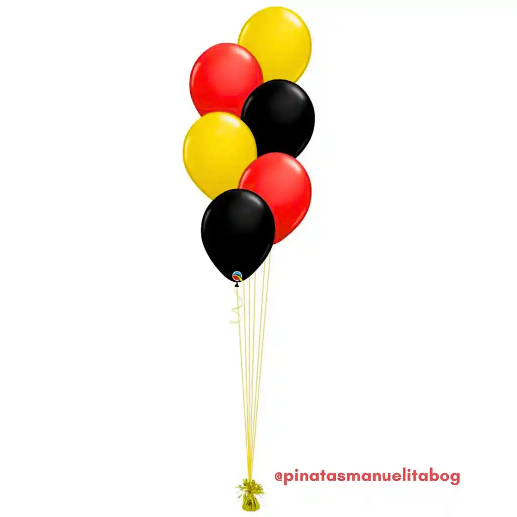 Bouquet de globos inflados con helio, incluye: ·6 Globos de látex en 3 colores segun imagen. ·1 Pesa sencilla para sostener globos. Tratamiento de larga duración para 6 globos. Tiempo aproximado flotación de globos 1 a 2 días. *TIEMPOS ACTUALES DE FLOTACIÓN VARIA DEPENDIENDO DE LA TEMPERATURA Y LAS CONDICIONES ATMOSFERICAS* (Se envía el bouquet armado e inflado)