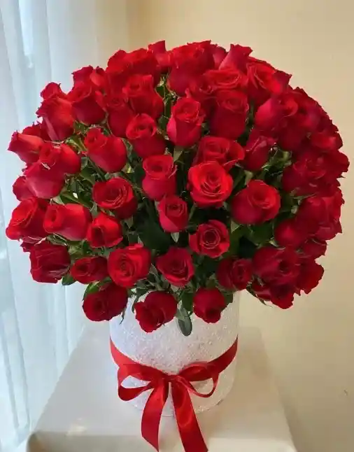 Este hermoso ramo de flores está compuesto por 60 rosas rojas, cuidadosamente seleccionadas para garantizar su frescura y belleza. Las rosas están elegantemente empaquetadas en una caja decorativa de alta calidad, acompañadas de un delicado moño que añade un toque final de sofisticación. Perfecto para cualquier ocasión especial, este arreglo floral transmite elegancia y cariño en cada detalle.