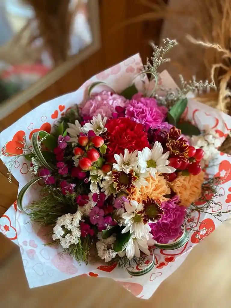 Sorprende a tu persona favorita con una linda variedad de claveles, margaritas, cintillas y follajes. Experimenta la magia de recibir flores y expresar una gran sonrisa de gratitud.