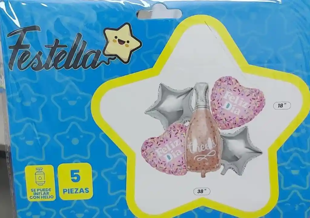 Bouquet Botella De Champaña Dorado Rosa x 5 piezas