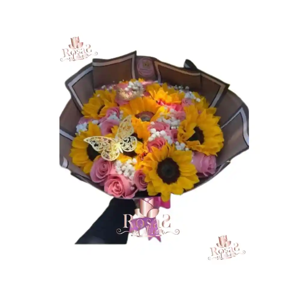 Un encantador bouquet que combina 8 girasoles radiantes con 12 a 15 rosas rosadas frescas, creando una mezcla perfecta entre energía y ternura. Envuelto en sofisticado papel negro, es ideal para sorprender, agradecer o iluminar cualquier momento especial. Incluye tu mensaje personalizado en el área de observaciones o escríbenos por WhatsApp al 3172528979 para hacerlo aún más significativo.
