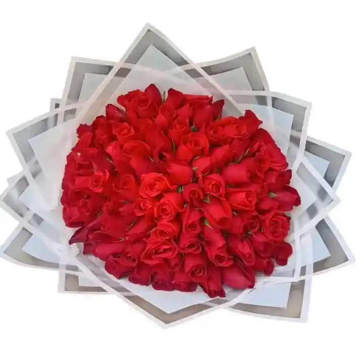 Impresionante ramo buchón de rosas rojas frescas, diseñado para sorprender con un detalle elegante, grande y lleno de romanticismo. Este bouquet destaca por su diseño redondo estilo buchón, elaborado con rosas rojas premium cuidadosamente seleccionadas y envuelto en papel elegante que resalta su belleza. Perfecto para ocasiones especiales como: ❤️ Aniversarios 🎂 Cumpleaños 💌 Sorpresas románticas 💍 Pedidas de amor 🌹 Regalos especiales Un ramo grande y romántico que impacta a primera vista, ideal para expresar amor, pasión y admiración.