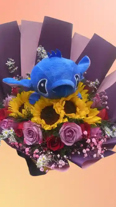 arreglo floral tipo buchon girasoly roa mas peluche