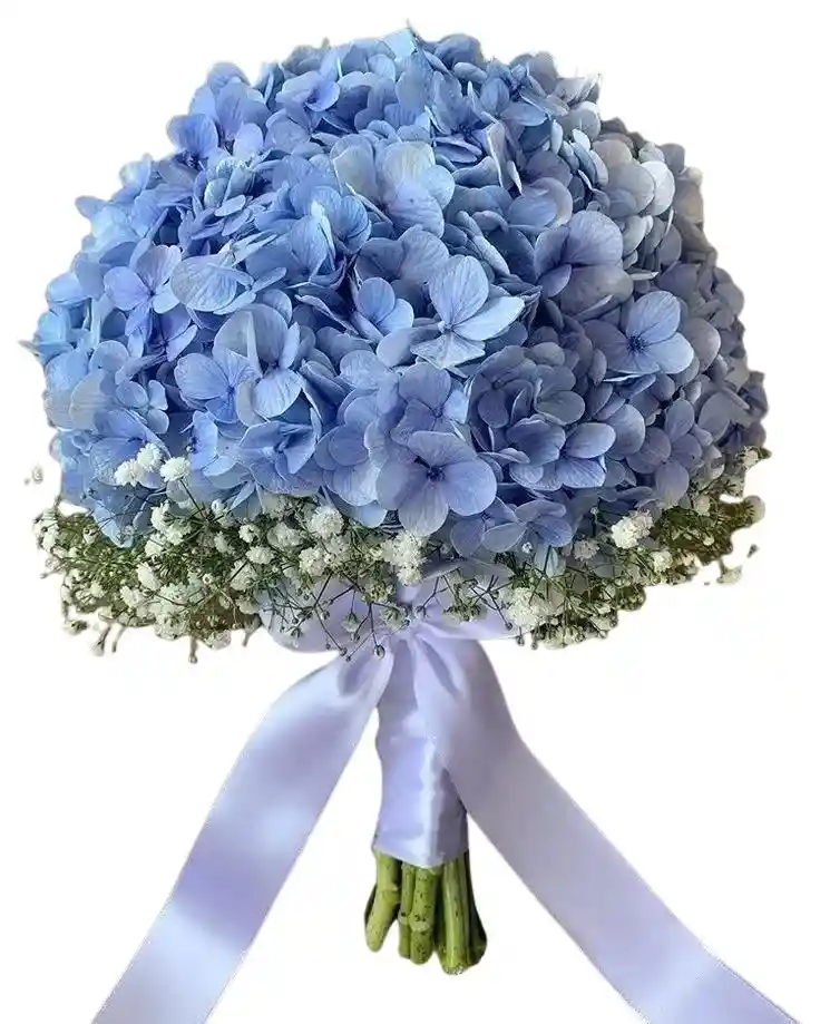 Bouquet de 2 hortencia azul con gypsophila Nota: La flor puede ser sustituida dependiendo la disponibilidad de color y del producto “Mensaje Personalizado” máximo de 30 caracteres (Dejar el mensaje en el chat, los comentarios no se previsualizan para la tienda por lo que si se dejan allí no podrá ser incluido).