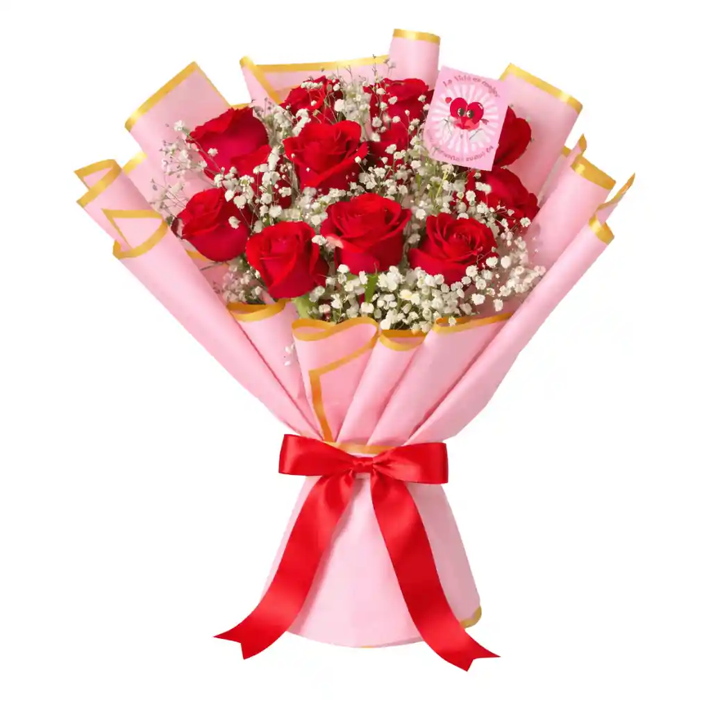 Un detalle romántico y atemporal que transmite amor en cada pétalo 🌹✨. Incluye un bouquet con doce rosas frescas en oasis, adornado con follaje natural y papel fino, decorado con moño elegante y un pin . Puedes elegir el color de las rosas para personalizarlo según la ocasión. Si nos envías tu mensaje, te obsequiamos la tarjeta personalizada para expresar tus sentimientos de manera única. REF: FLW19