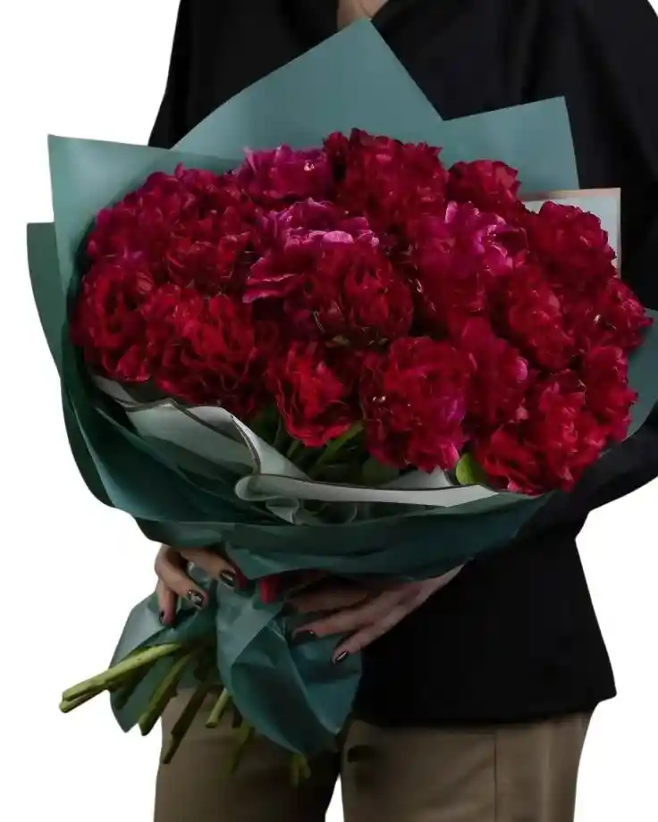 Bouquet de 20 claveles vinotinto Nota: La flor puede ser sustituida dependiendo la disponibilidad de color y del producto “Mensaje Personalizado” máximo de 30 caracteres (Dejar el mensaje en el chat, los comentarios no se previsualizan para la tienda por lo que si se dejan allí no podrá ser incluido).