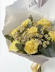 Bouquet de 10 hermosos claveoles color amarillo acompañado de margarita mini y eucalipto