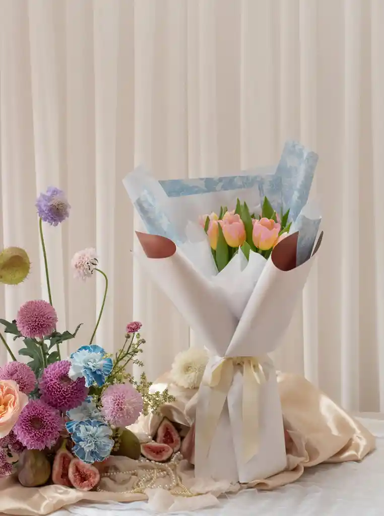 Inspirado por Clemencia de Caycedo, pionera en la lucha por la educación de las mujeres en Colombia. Envuelto con gracia en finas capas de papel coreano perfumado, 'Clemencia' despierta la inspiración y belleza a través de los tulipanes. Tamaño: Mediano - 10 tallos de tulipanes holandeses. Duración: Si sigues nuestras instrucciones puede durar entre 8 y 10 días. Deja el mensaje para la postal, en la casilla de comentarios.