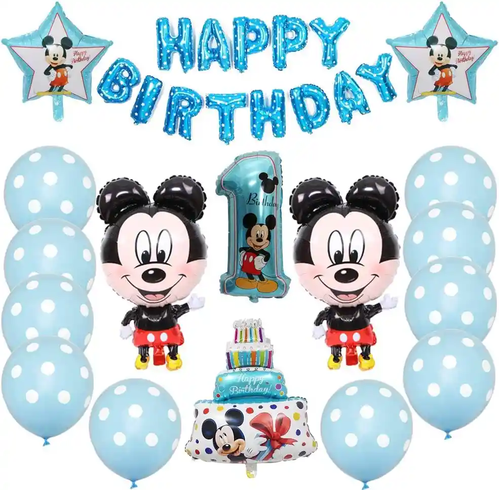 Bouquet de globos de Mickey Mouse, se puede inflar con Helio o aire. Cuenta con 20 piezas. Color Azul. Incluye el numero de tu preferencia.