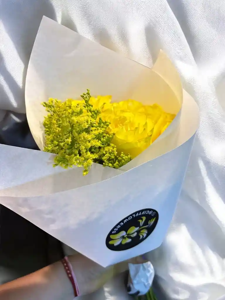 Bouquet con aprox. 12 rosas amarillas y soliago Nota: La flor puede ser sustituida dependiendo la disponibilidad de color y del producto “Mensaje Personalizado” máximo de 30 caracteres (Dejar el mensaje en el chat, los comentarios no se previsualizan para la tienda por lo que si se dejan allí no podrá ser incluido).