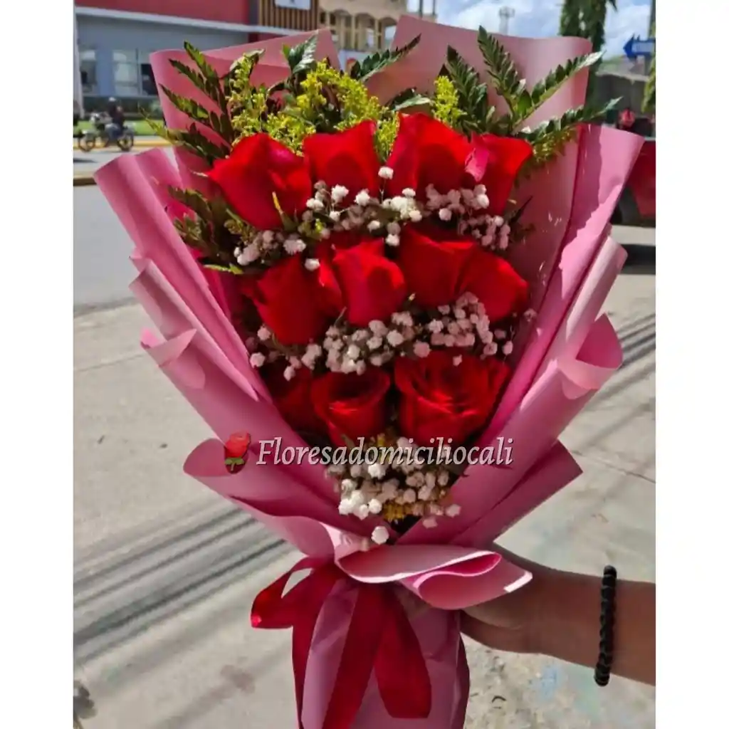 Bouquet de 12 rosas en escalera con perla
