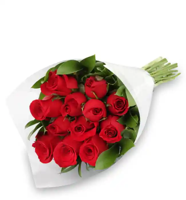Bouquet de 12 Rosas Rojas + envoltura en papel. Perfecto para regalos, detalles, aniversarios, cumpleaños y fechas especiales