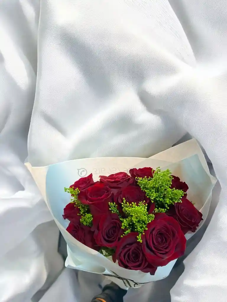 Bouquet de 12 rosas rojas acompañadas de solidago. Nota: La flor puede ser sustituida dependiendo la disponibilidad de color y del producto “Mensaje Personalizado” máximo de 30 caracteres (Dejar el mensaje en el chat, los comentarios no se previsualizan para la tienda por lo que si se dejan allí no podrá ser incluido).