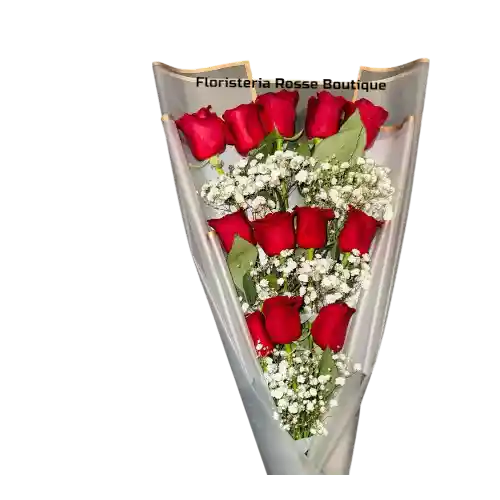 Hermoso bouquet de 12 rosas rojas frescas en estilo cascada, envuelto en elegante papel coreano blanco que crea un contraste romántico y moderno. Perfecto para aniversarios, declaraciones de amor o momentos especiales.