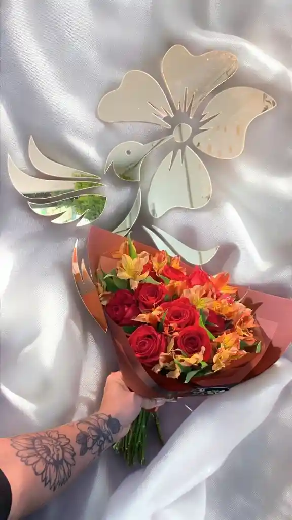 Bouquet con aprox. 12 rosas rojas con 2 paquetes de astromelias y aspidistra. Nota: La flor puede ser sustituida dependiendo la disponibilidad de color y del producto “Mensaje Personalizado” máximo de 30 caracteres (Dejar el mensaje en el chat, los comentarios no se previsualizan para la tienda por lo que si se dejan allí no podrá ser incluido).