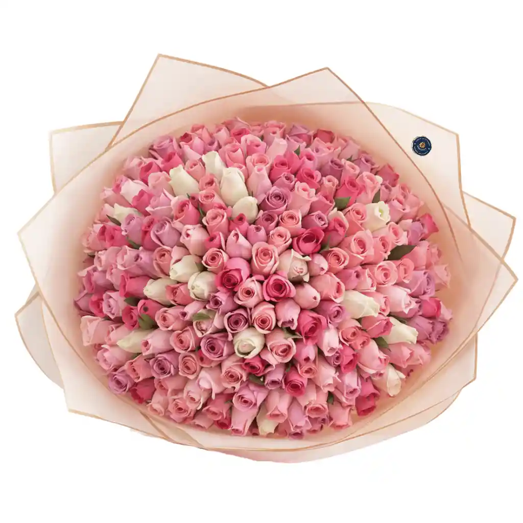 Un regalo majestuoso e inolvidable que expresa amor absoluto en cada pétalo 🌹✨. Incluye un bouquet con papel coreano y doscientas rosas frescas, decorado con un moño elegante. Si nos envías tu mensaje, te obsequiamos la tarjeta personalizada para expresar tus sentimientos de manera única. REF: FLW18