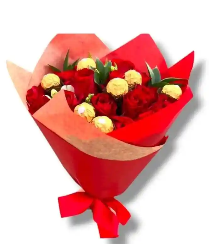 Bouquet de 24 rosas rojas 8 chocolates Ferrero rocher.