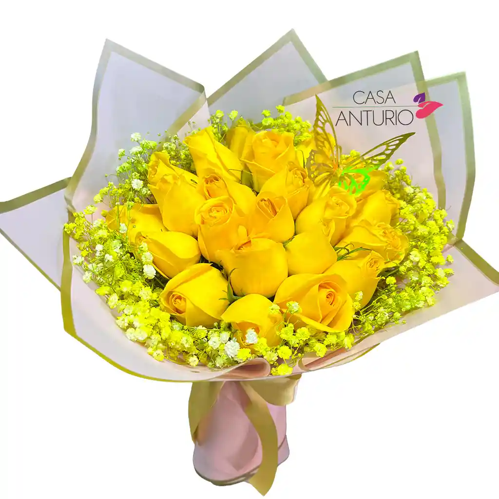 Bouquet De 24 Rosas Amarillas y Perla