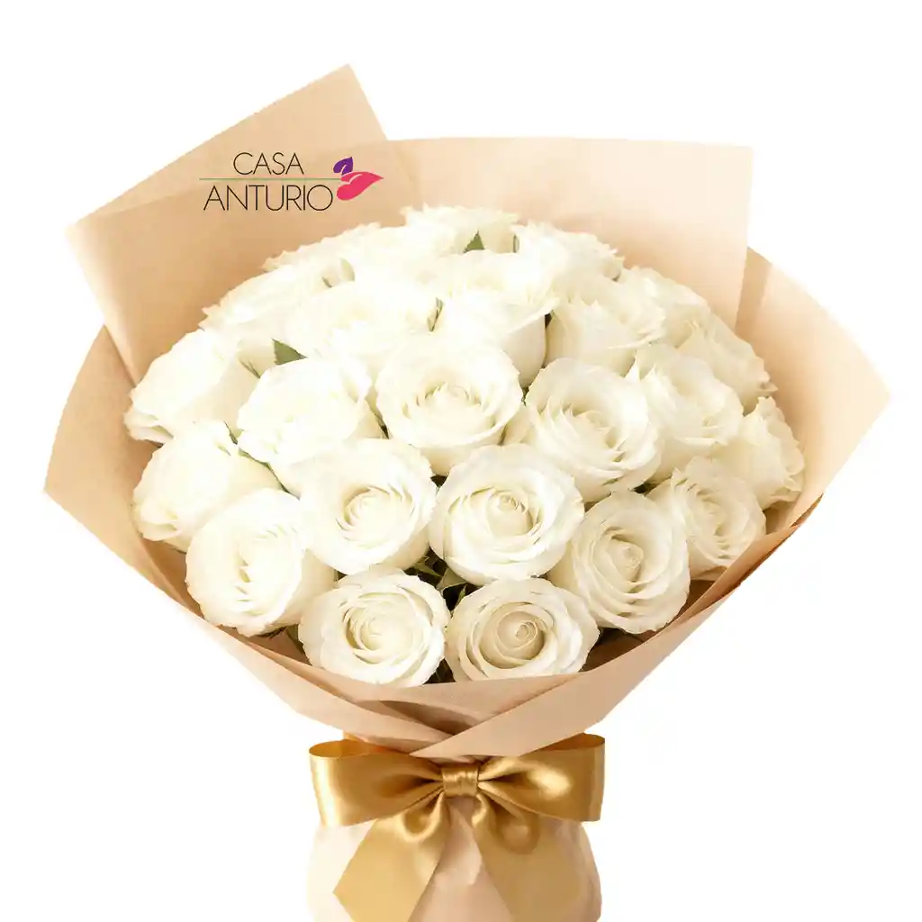 24 rosas blancas que irradian pureza y elegancia, cuidadosamente envueltas en papel coreano y decoradas con un moño. Un bouquet clásico y sofisticado que transmite sentimientos sinceros y buenos deseos.