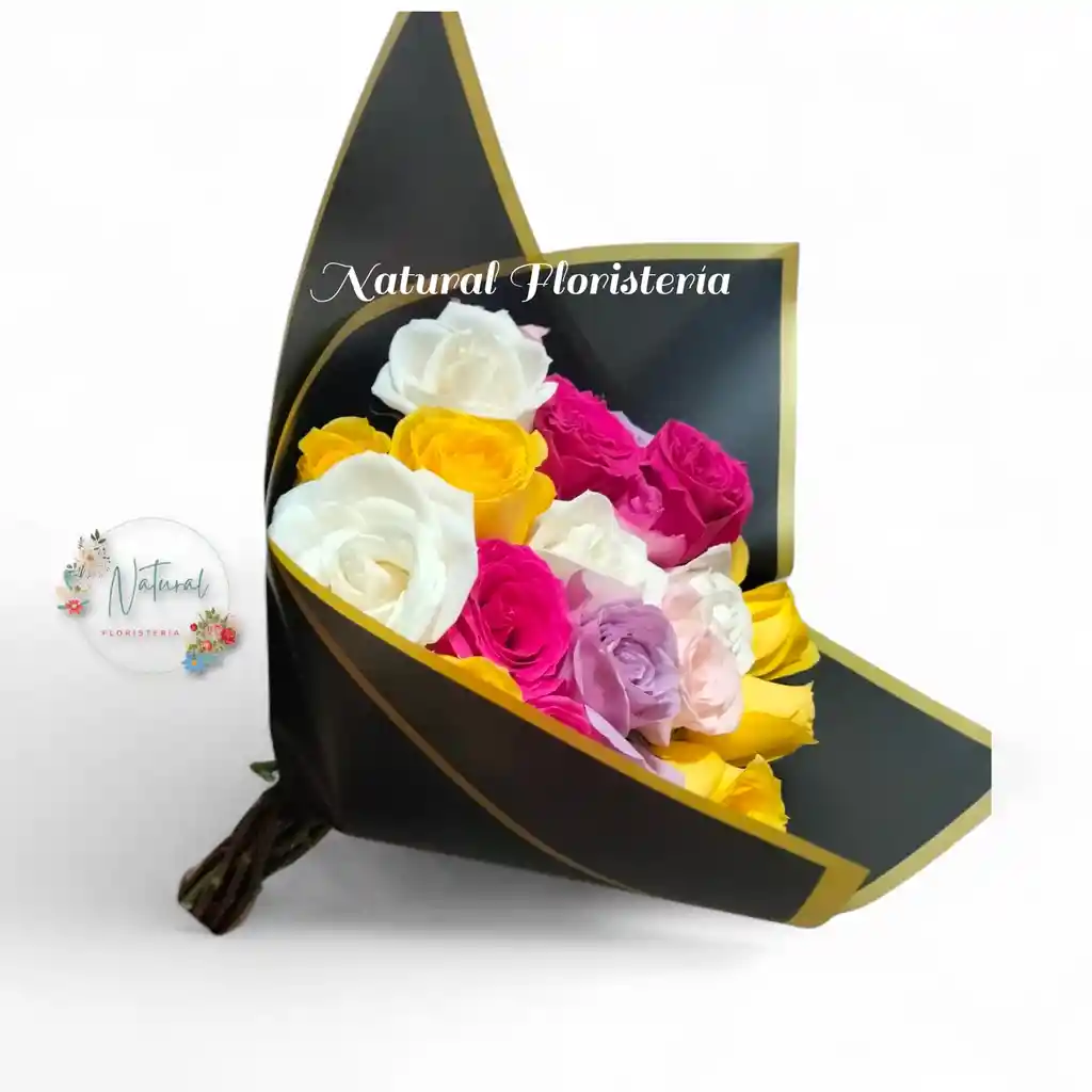 Bouquet de 24 unidades de rosas de colores surtidos. Si desea mensaje para las flores dejarlo en el chat ,en comentarios no nos es visible.(mensaje corto , tarjeta pequeña).