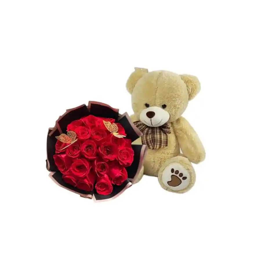 Bouquet De 24 Rosas Peluche Oso 30 Cm