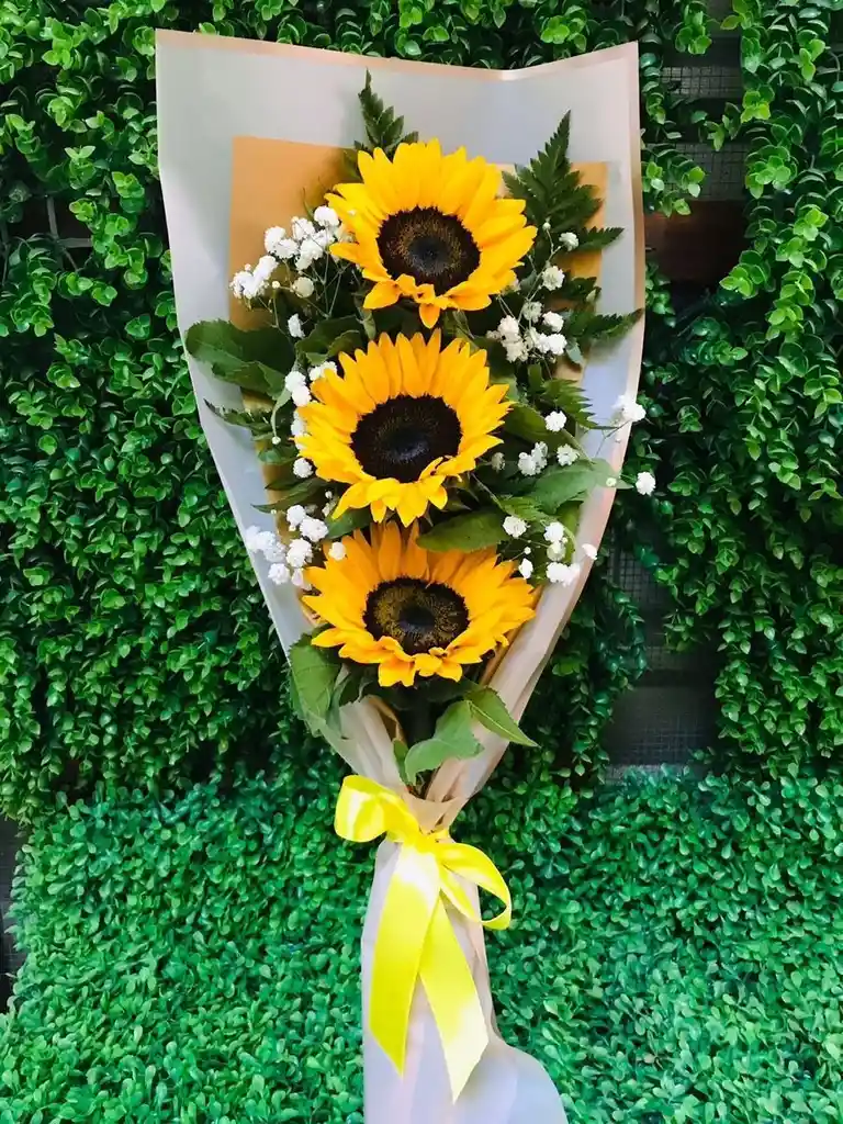 Brilla con Cada Detalle ✨ Bouquet de 3 Girasoles acompañado de delicado Rusco, ideal para transmitir alegría, gratitud y buena energía con un toque natural y elegante.🌻