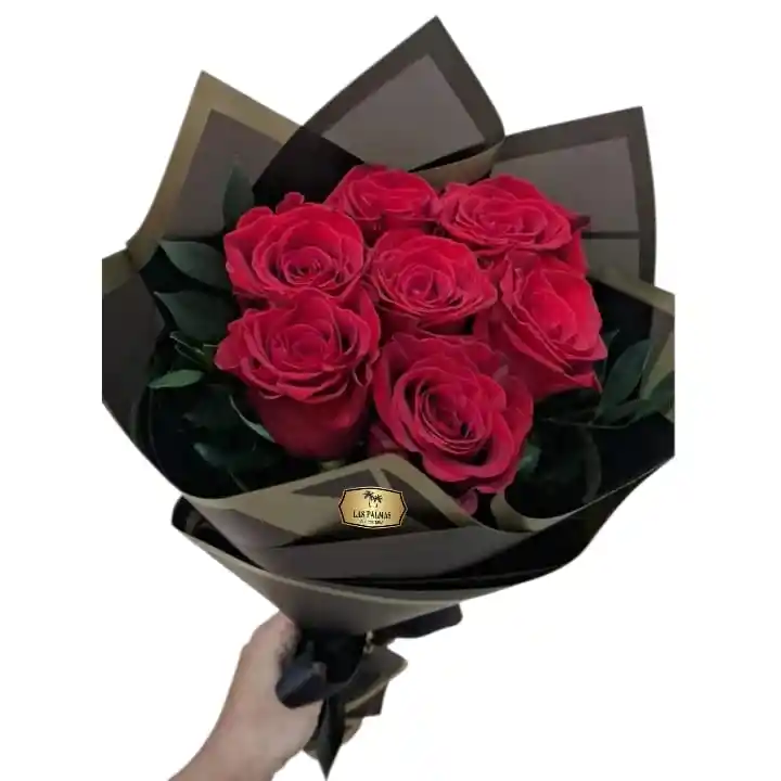 Bouquet de 6 Rosas Rojas Frescas presentado con un empaque elegante y delicado. El detalle perfecto para expresar amor y sorprender . Incluye tarjeta para mensaje personalizado