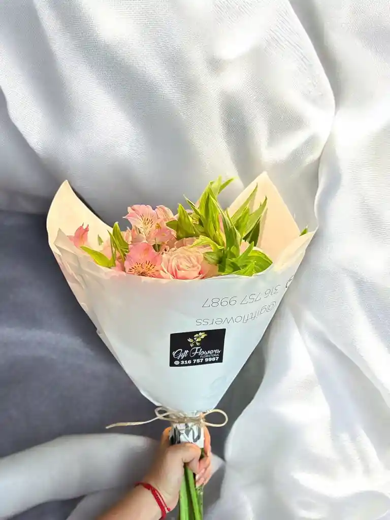 Bouquet de 6 rosas rosadas acompañadas de astromelia rosada. Nota: La flor puede ser sustituida dependiendo la disponibilidad de color y del producto “Mensaje Personalizado” máximo de 30 caracteres (Dejar el mensaje en el chat, los comentarios no se previsualizan para la tienda por lo que si se dejan allí no podrá ser incluido).