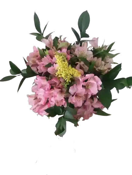 Bouquet de Astromelias color según disponibilidad, 30 cm de largo aprox. Incluye decoración y tarjeta.