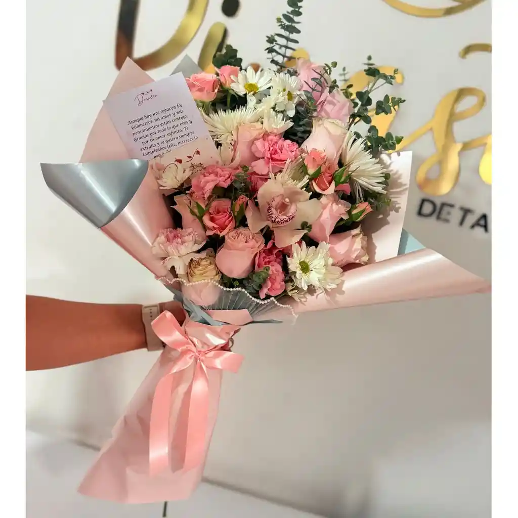 Bouquet en espiral flores mixtas . Hermoso papel coreano y cintas de tela, además ofrecemos la opcion de obsequiarte un tarjeta personalizada para expresar tus sentimientos de manera unica. Si deseas incluidar dejanos un menasaje en el chat, y la haremos especial para ti.