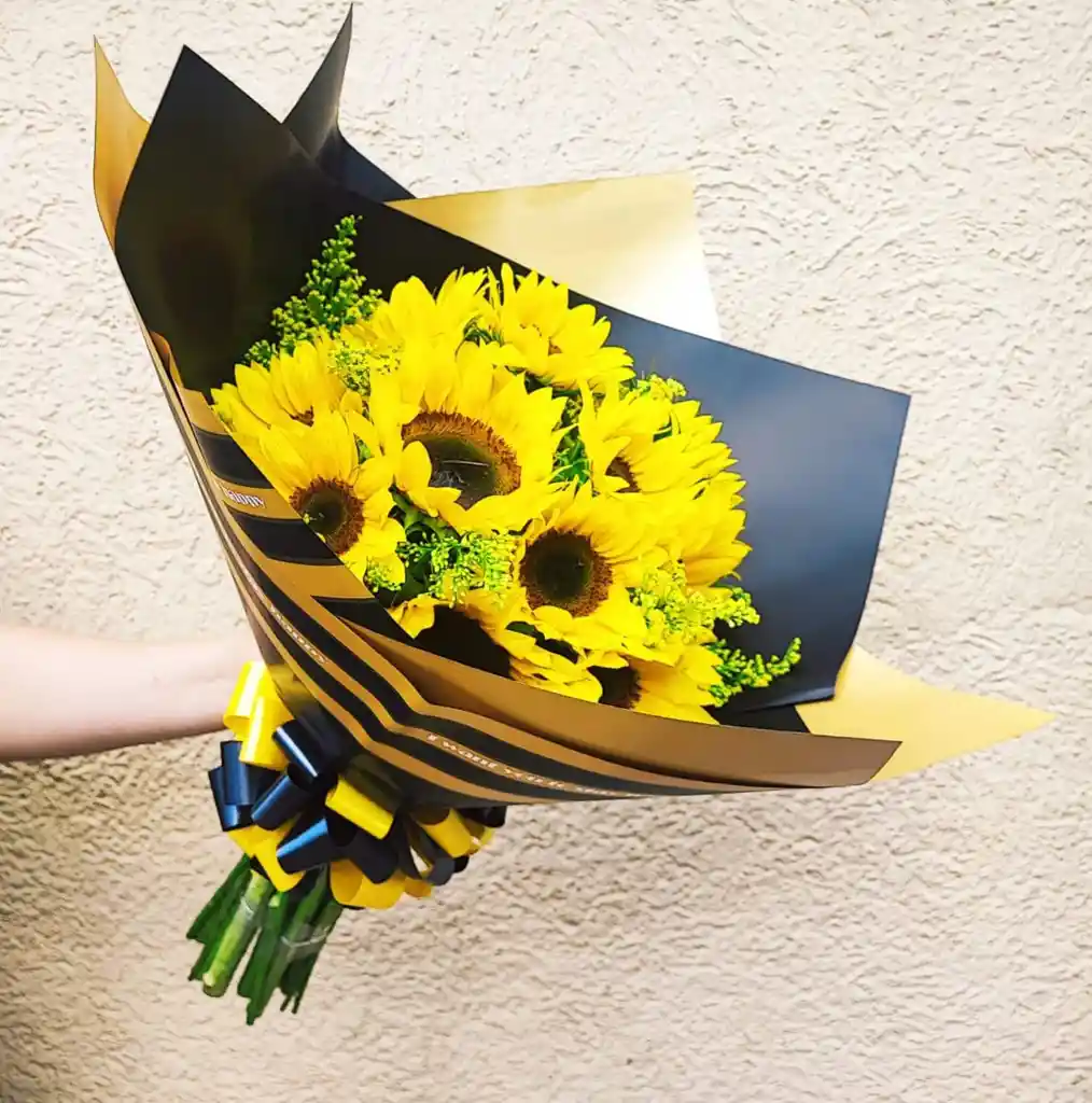 HERMOSO ARREGLO DE MANO EN GIRASOLES
