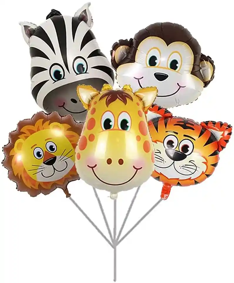BOUQUET DE GLOBOS ANIMALITOS - 5 PIEZAS Globos están hechos de película de aluminio de alta calidad que es seguro y no tóxico. Brillo metálico y tiene un color uniforme.