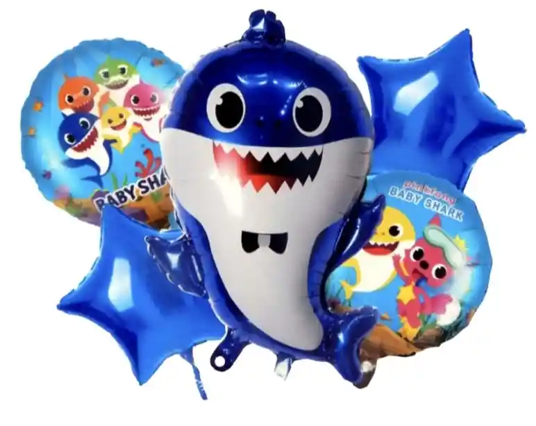 Bouquet de globos Baby Shark - Sin inflar x 5 UND Color azul y amarillo disponible, informar preferencia en el chat