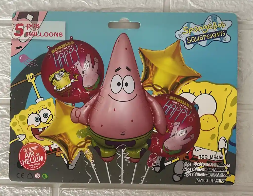 BOUQUET DE GLOBOS BOB ESPONJA PATRICIO X5 PIEZAS COD.3457