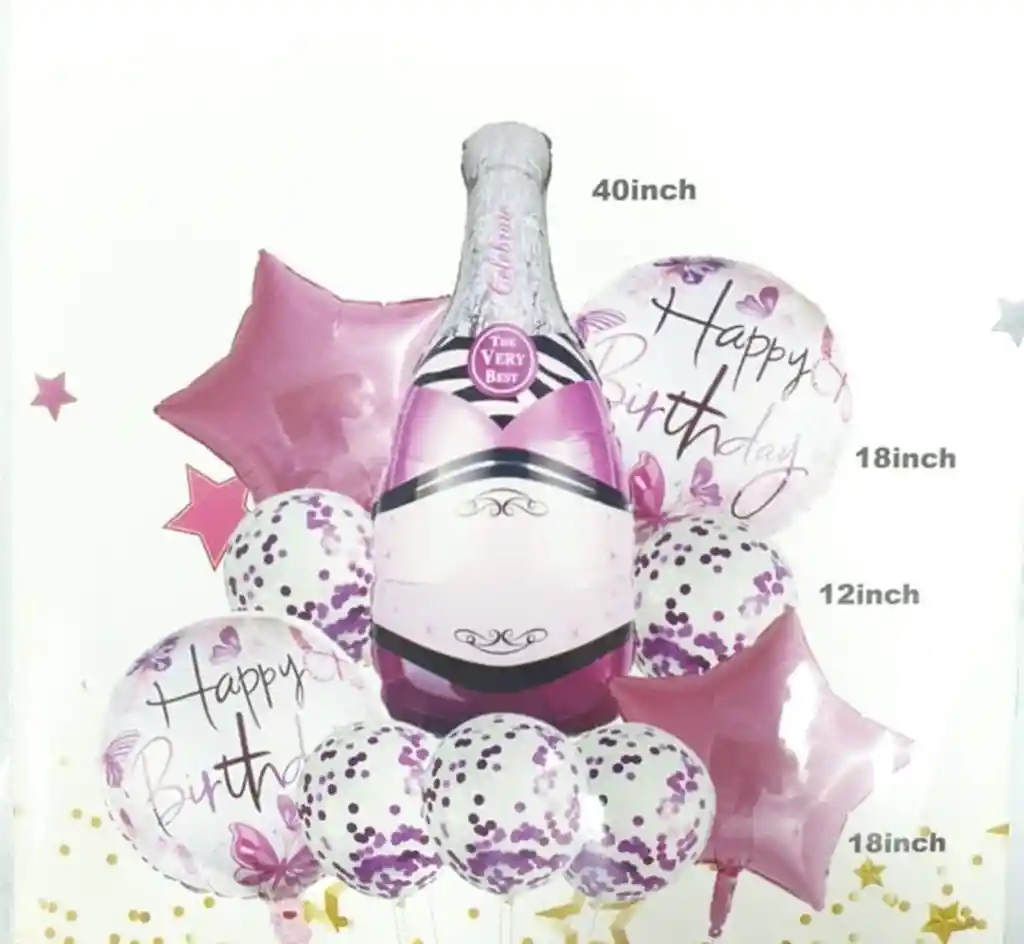 BOUQUET DE GLOBOS FELIZ CUMPLEAÑOS - 10 PIEZAS ROSA "¡Celebra con alegría! Nuestro Bouquet de Globos Feliz Cumpleaños de 10 piezas es el paquete perfecto para añadir color y diversión a tu fiesta."