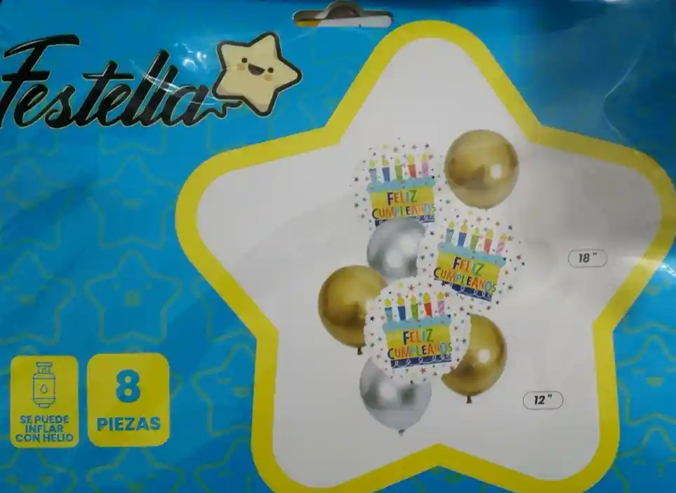 Bouquet de Globos Feliz Cumpleaños Dorado Y Plata x 8 Piezas Festella