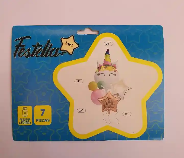 Bouquet de Globos Feliz Cumpleaños Unicornio Cristal X 7 Piezas Festella