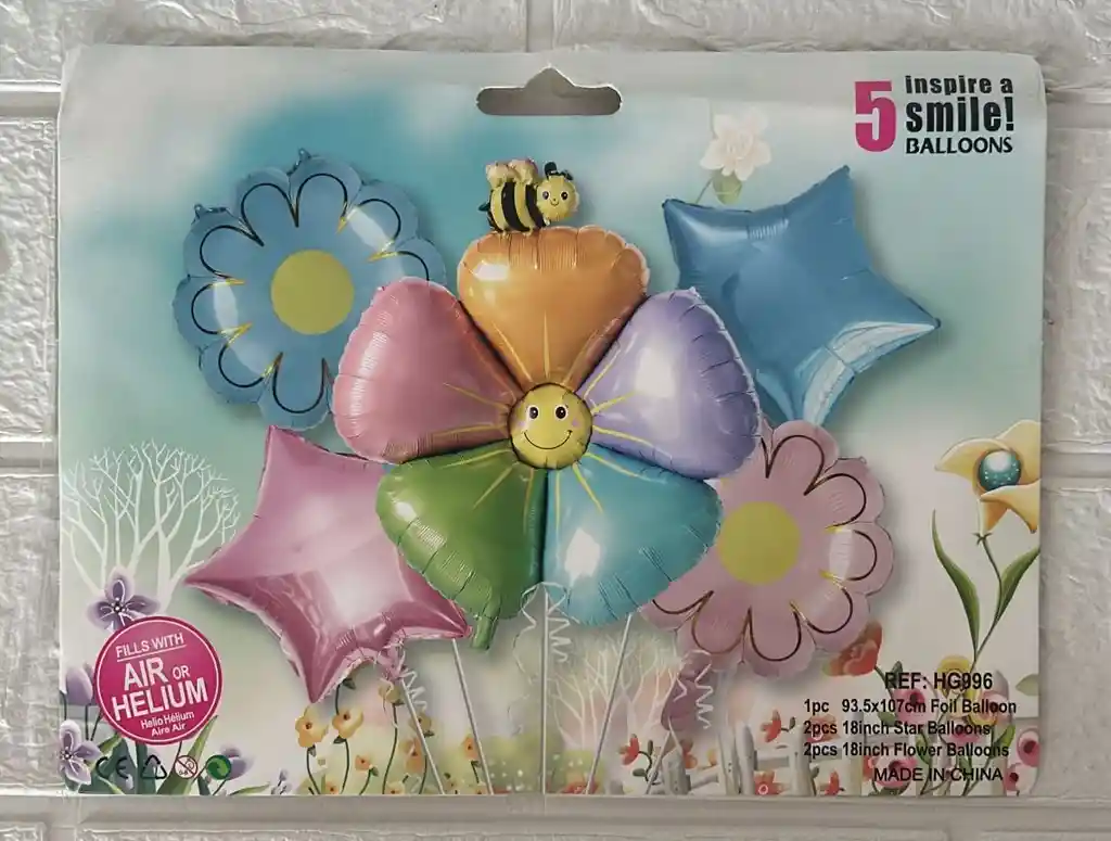 BOUQUET DE GLOBOS FLOR X5 PIEZAS COD.3462