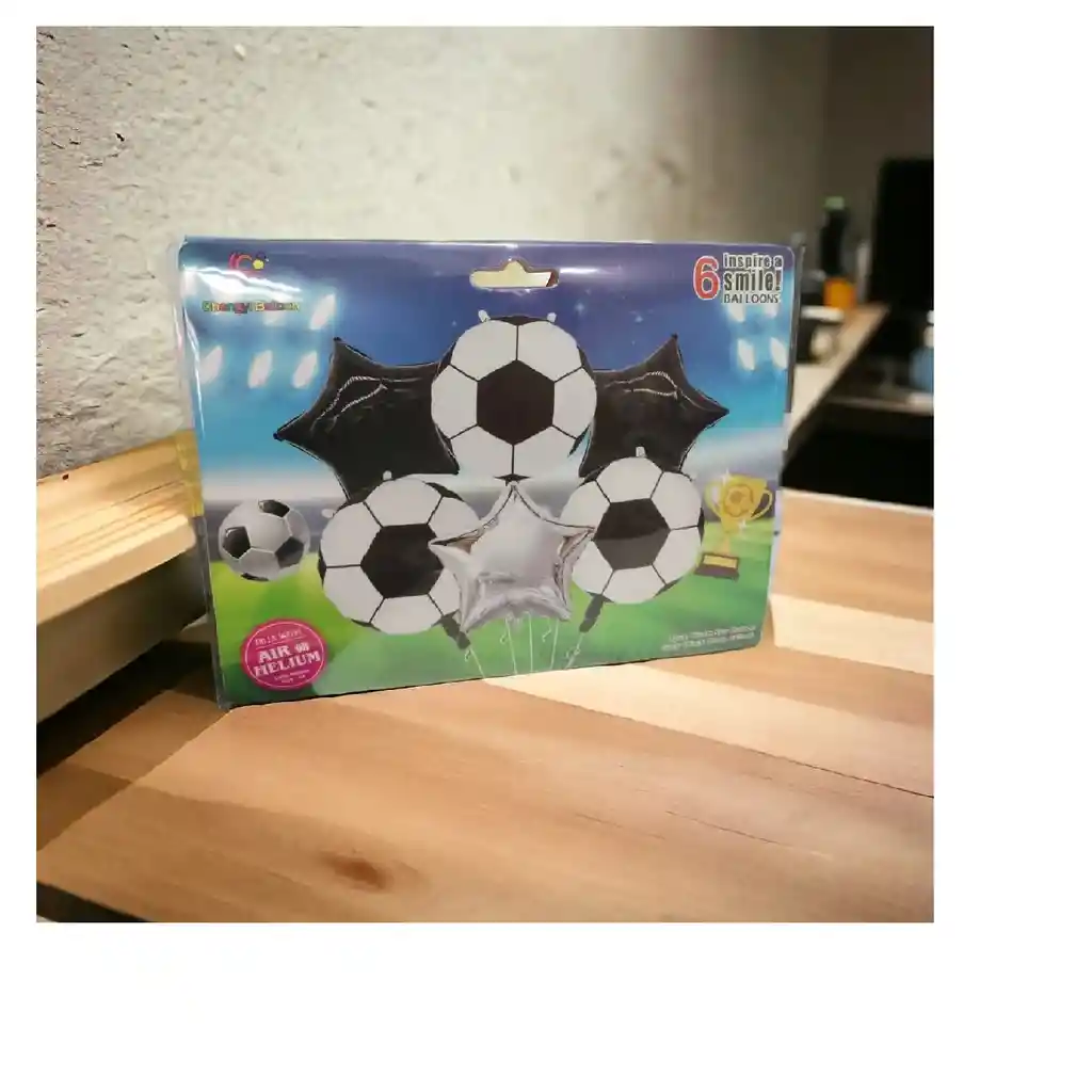 Un Bouquet de fútbol, es una decoracion perfecta para los fanaticos del Futbol. Incluye: 3 Globos metalizados en forma de Balón 3 Globos metalizados en forma de estrella Nota: •Los Globos vienen desinflados •Se pueden inflar con helio
