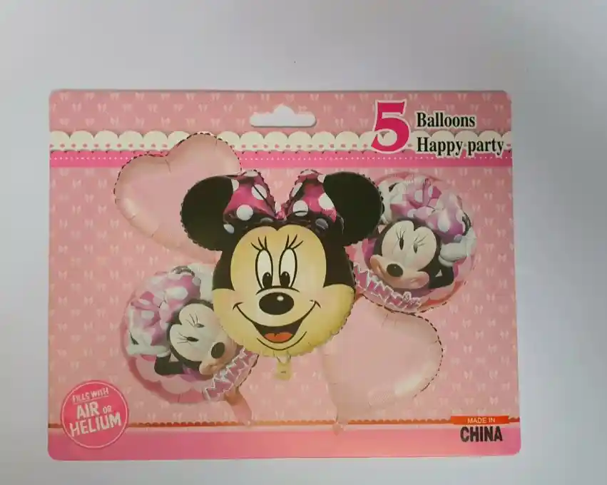 Bouquet de Globos Minnie Mouse Rosada X 5 Piezas