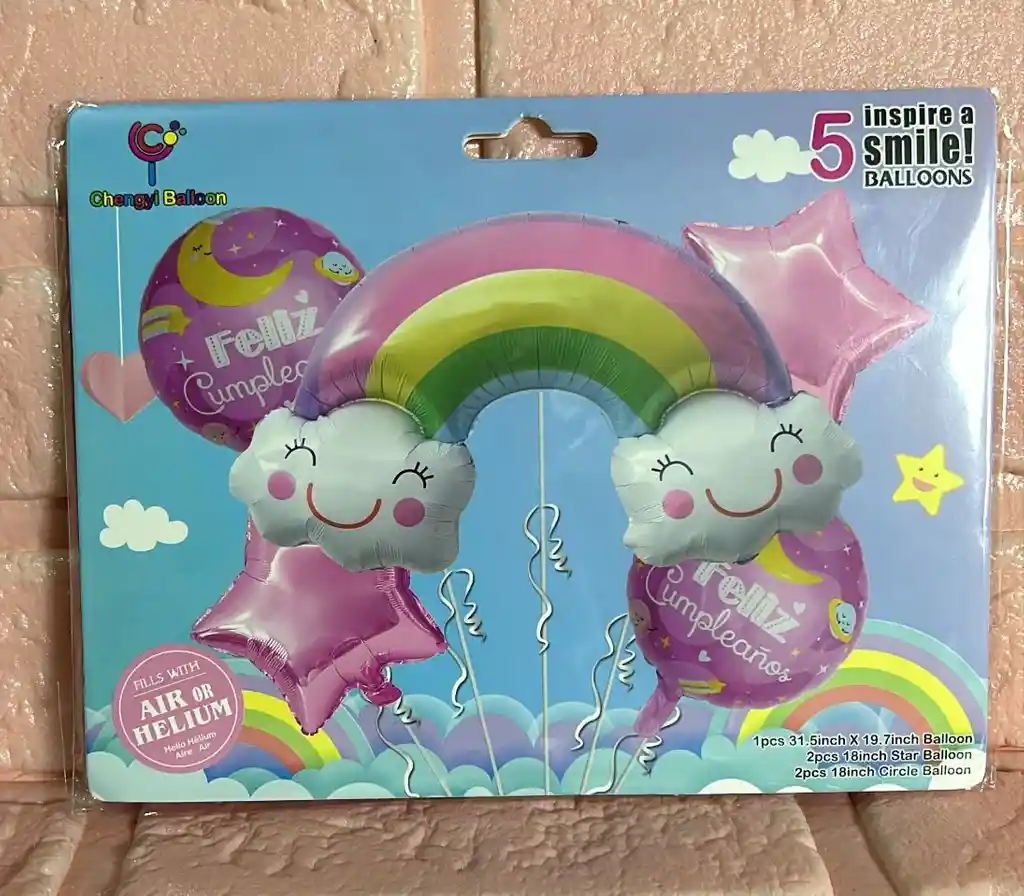 BOUQUET DE GLOBOS NUBES ARCOIRIS X5 PIEZAS COD.2053