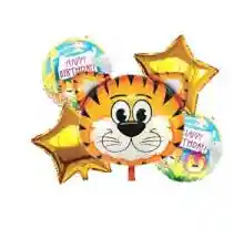 Bouquet de Globos Tigre Estrellas Doradas Feliz Cumpleaños X 5 Piezas Festella
