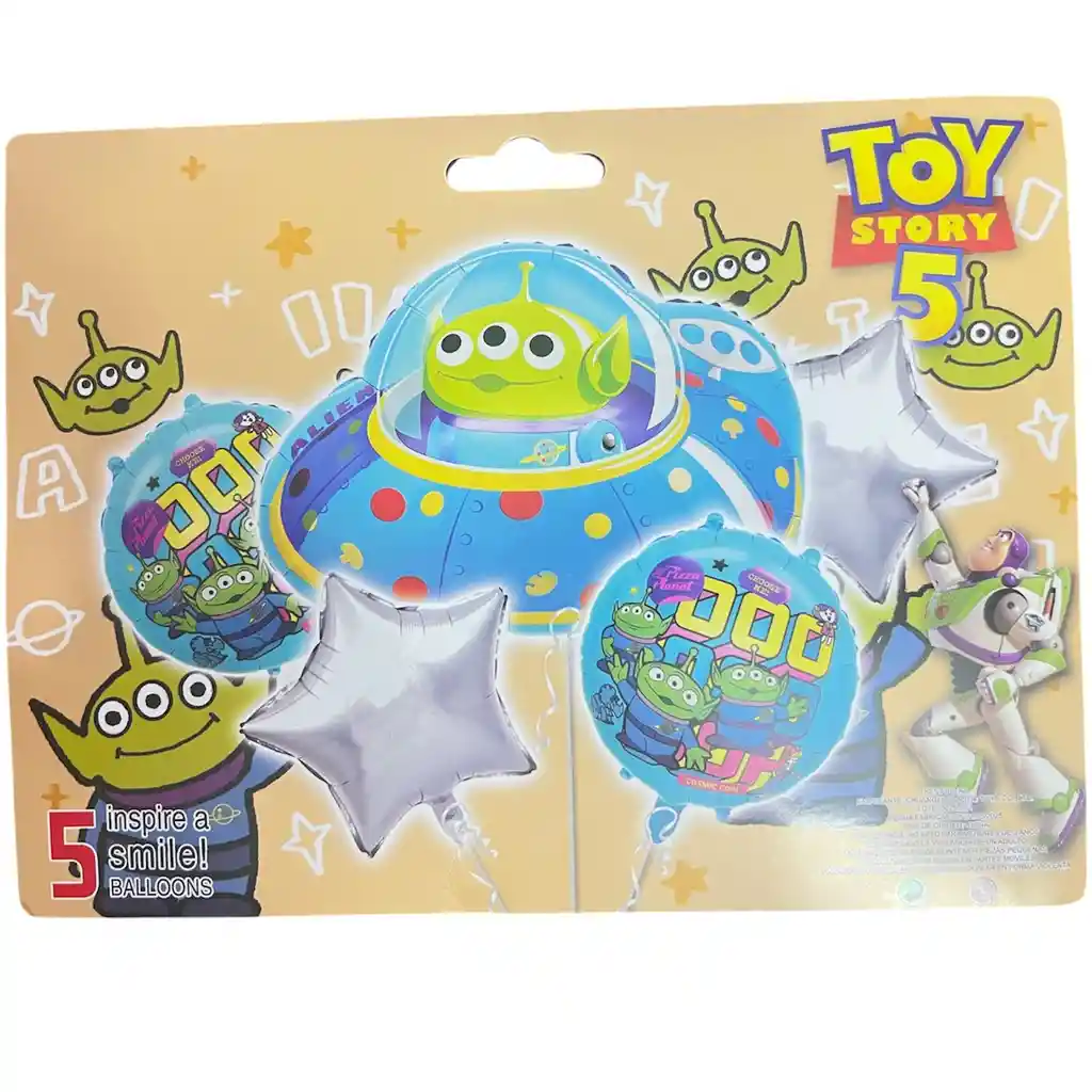 Bouquet de globos Toy Strory Marcianito 5 piezas metalizado