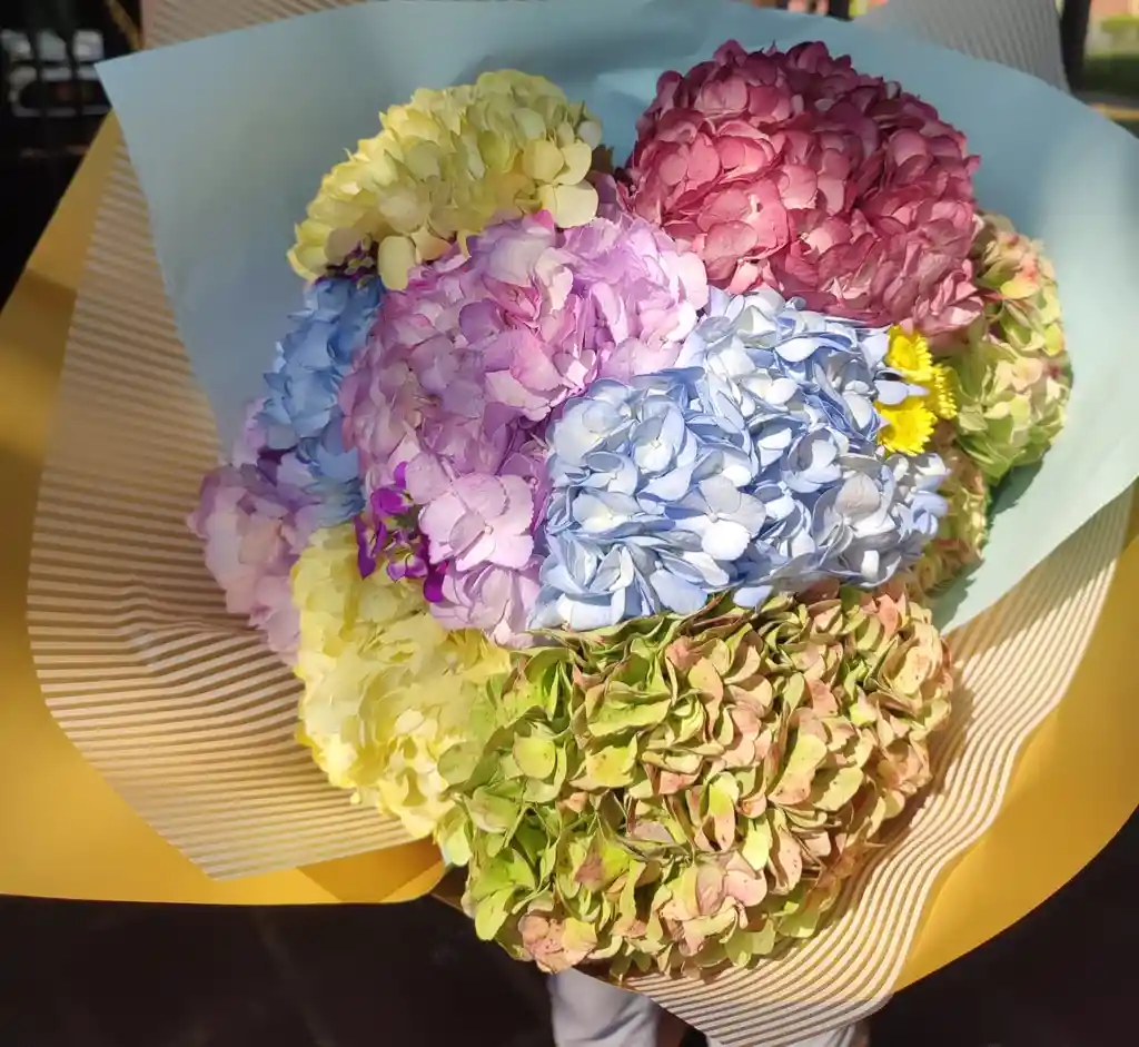 Agrégale un poco de color a tu vida! 9 tallos de hortensias, burbujas para tu hogar. Colores variables.