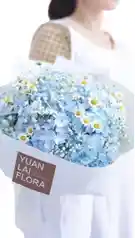 Bouquet de 6 hortencias azul con 1 paquete de margarita mini y gypsophila Nota: La flor puede ser sustituida dependiendo la disponibilidad de color y del producto “Mensaje Personalizado” máximo de 30 caracteres (Dejar el mensaje en el chat, los comentarios no se previsualizan para la tienda por lo que si se dejan allí no podrá ser incluido).
