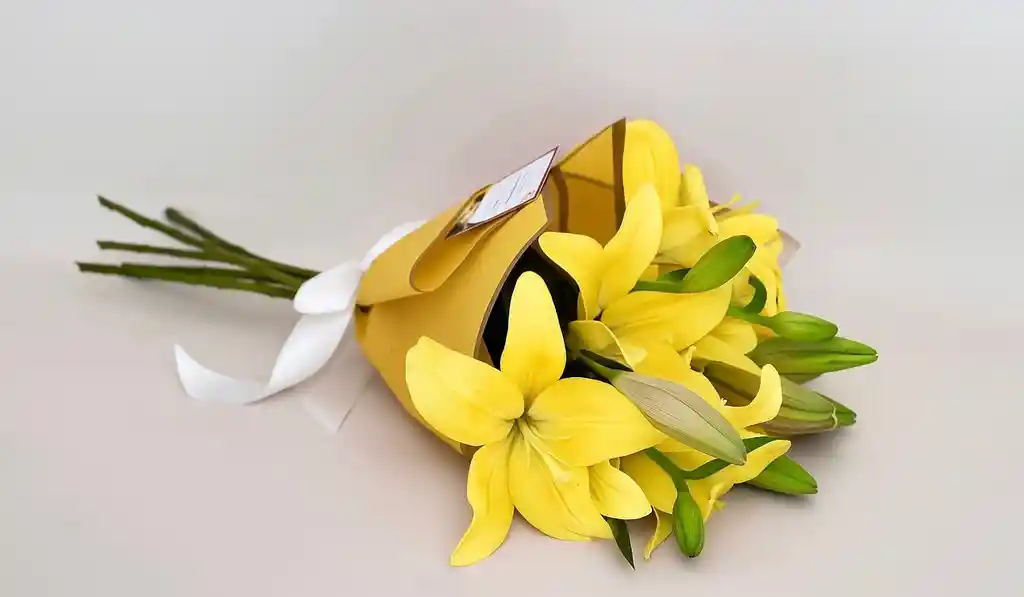 Bouquet de lirios amarillos, 5 tallos tipo exportacion.