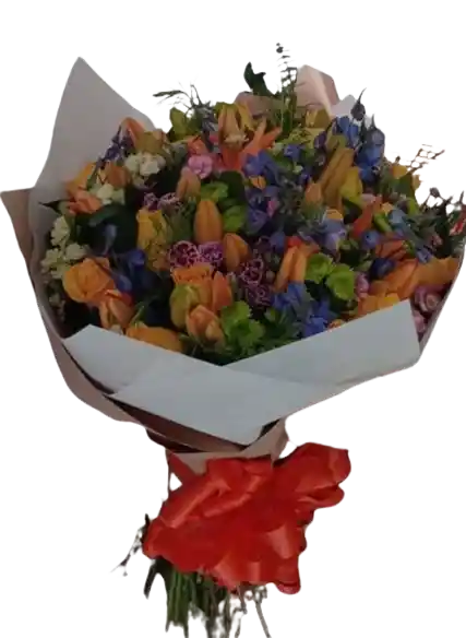Contiene: Lirios, claveles, rosas, pinoquios y follaje también la decoración y mensaje (dejarlo en comentarios) Un ramo de flores surtidas puede ser un regalo apropiado para expresar amistad y aprecio hacia alguien. Representa la idea de que cada flor en el arreglo es especial y única, al igual que la relación entre el obsequiante y el destinatario.